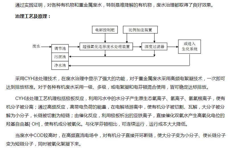 超強氧化還原廢水處理裝置(CYH法)處理各種有機廢水、各種重金屬廢水